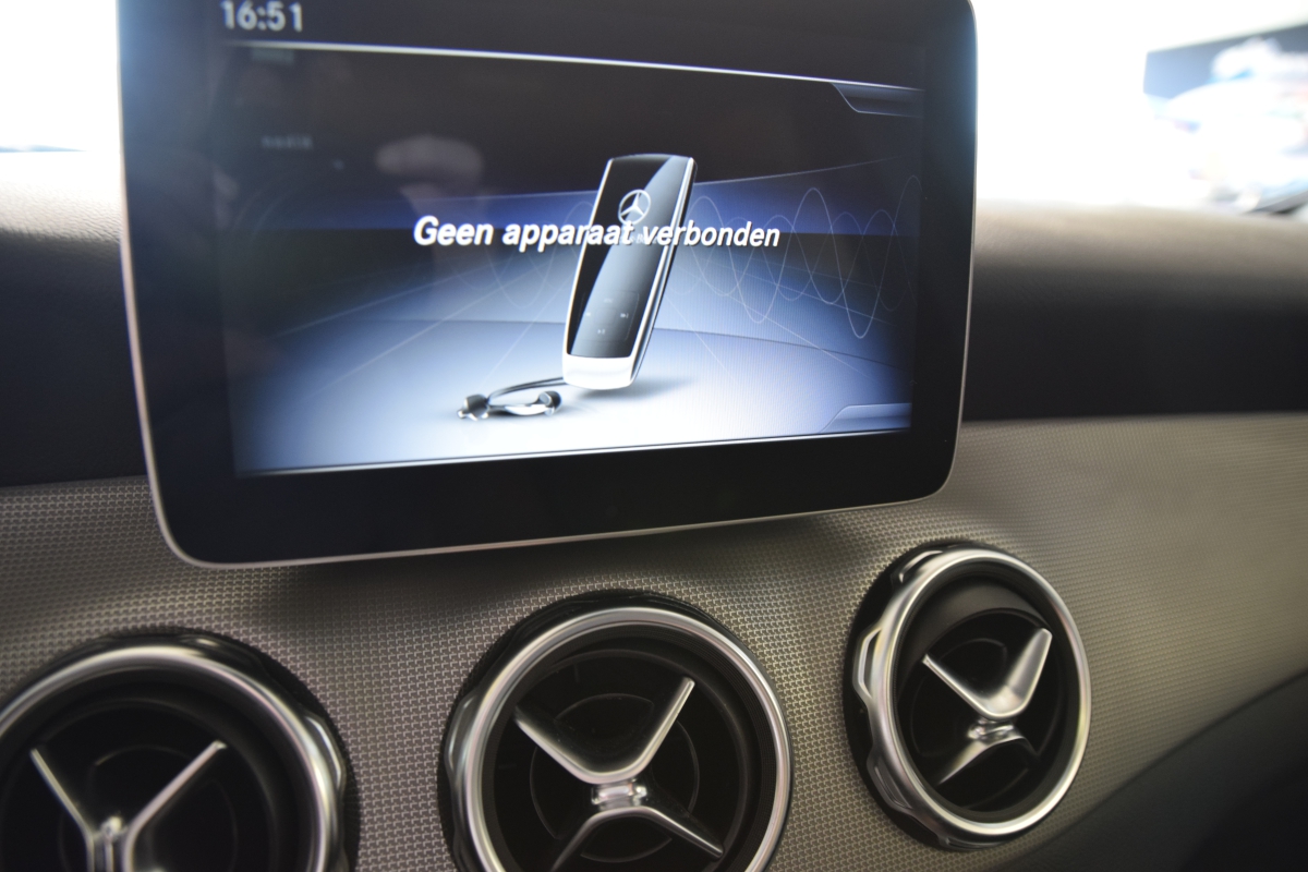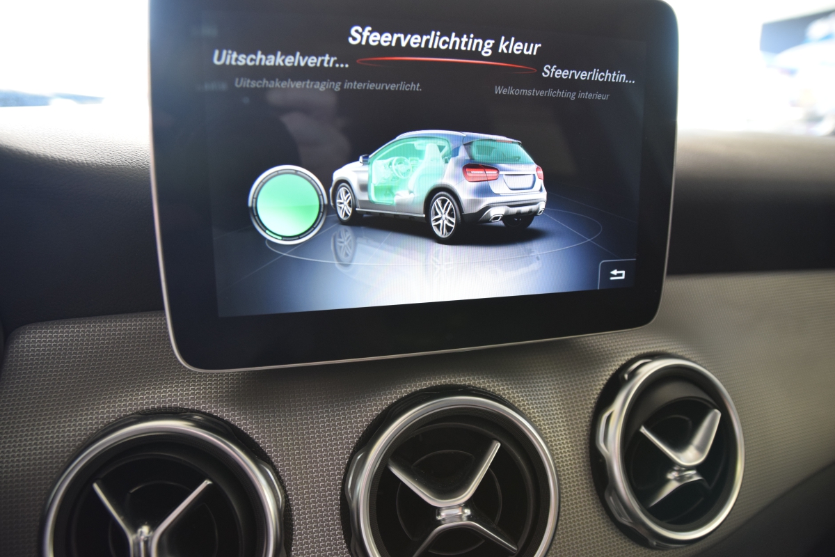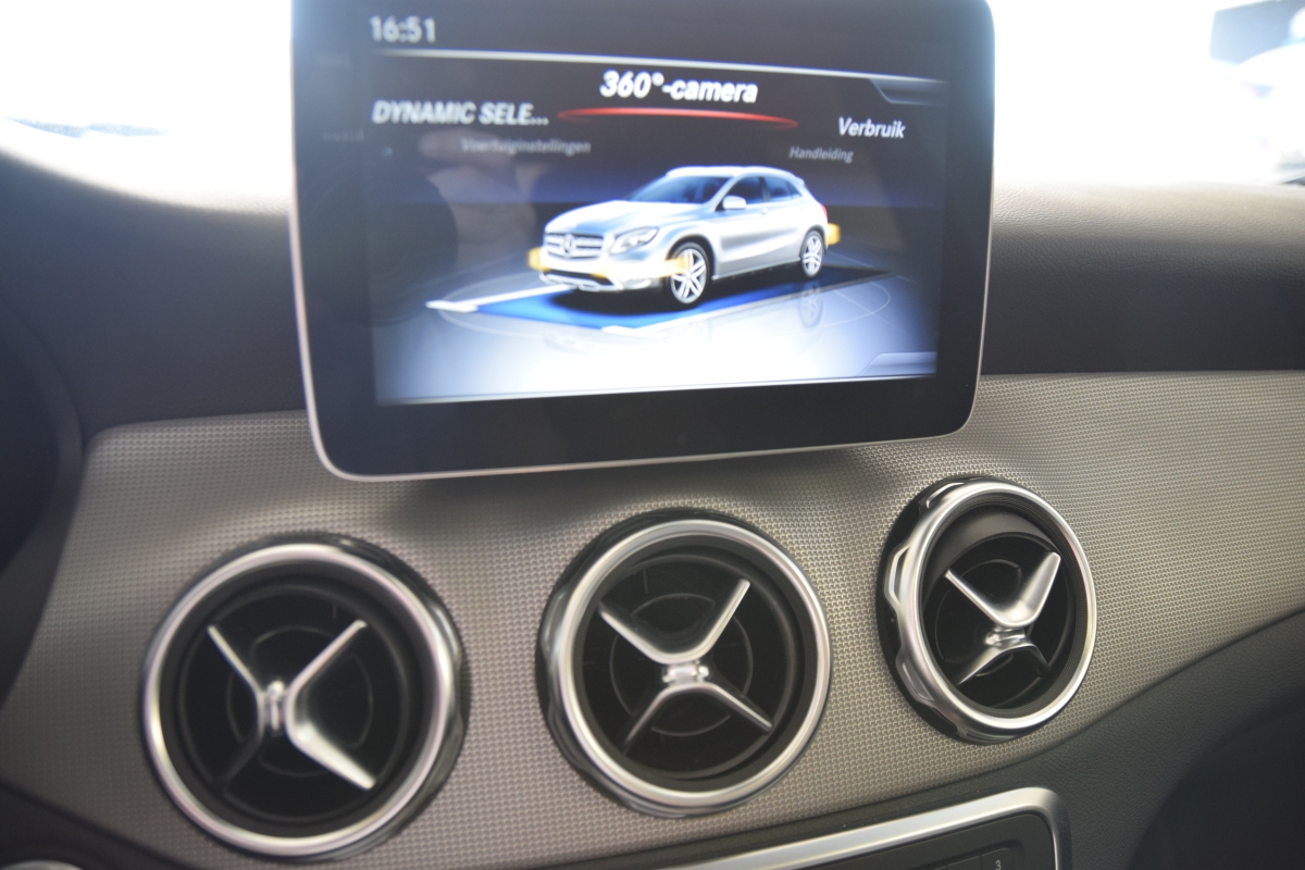 Fonkelnieuwe Mercedes GLA 200 Premium AMG met alle mogelijke opties = Open panoramisch dak, navigatie, half lederen interieur, achteruitrijcamera en sensoren enz... prijs is 21% btw inbegrepen