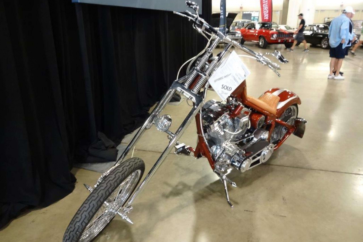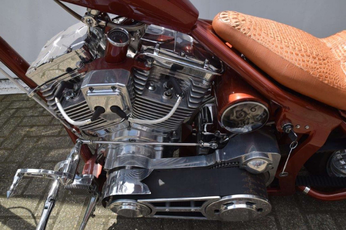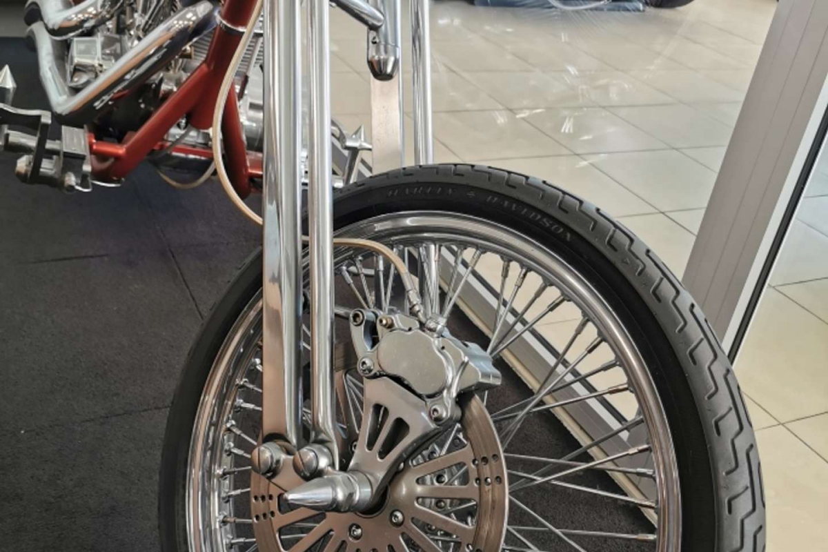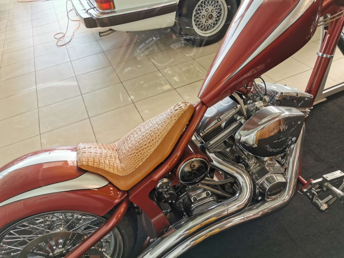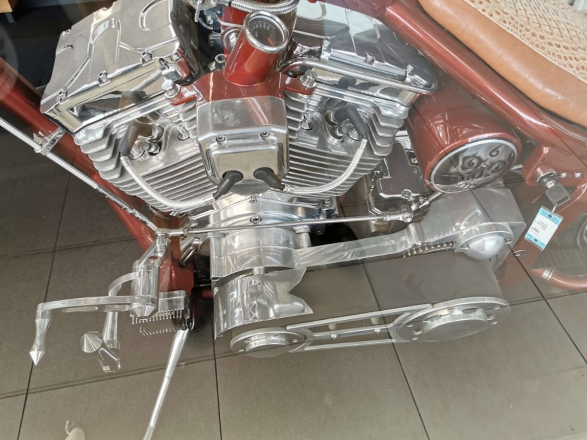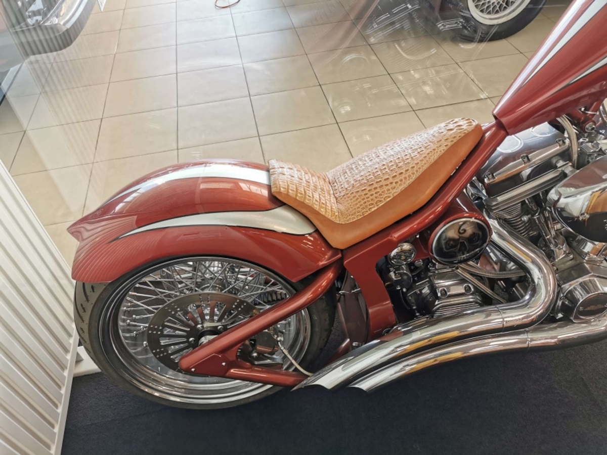 Custom soft-tail with a 113 cubic inch engine, belt drive, Van en Hines exhaust, wire wheel, more than $75,000 to build!